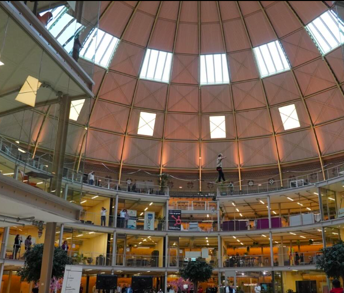 Работы стартовали в 2020-м, а через два года упомянутая Global School for Entrepreneurship запустила обучение в исторических стенах. Рядом с аудиториями и переговорными разместились стартап-инкубатор, коворкинги и Cupola Café. В выкопанном подвале открылся кинотеатр FilmKoepel с шестью залами, показывающий артхаус и коммерческое кино.
